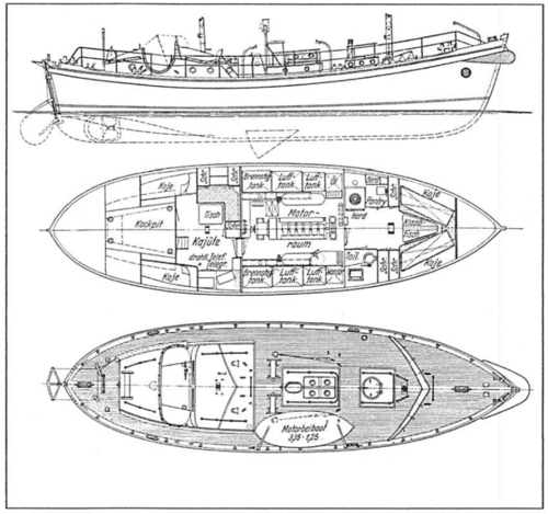 Ein reichlich bemessener Schmieröltank war gleichfalls im Motorraum aufgestellt. Der Frischwasservorrat war in einem Tank von 230 l Inhalt untergebracht und befand sich ebenfalls im Maschinenraum.